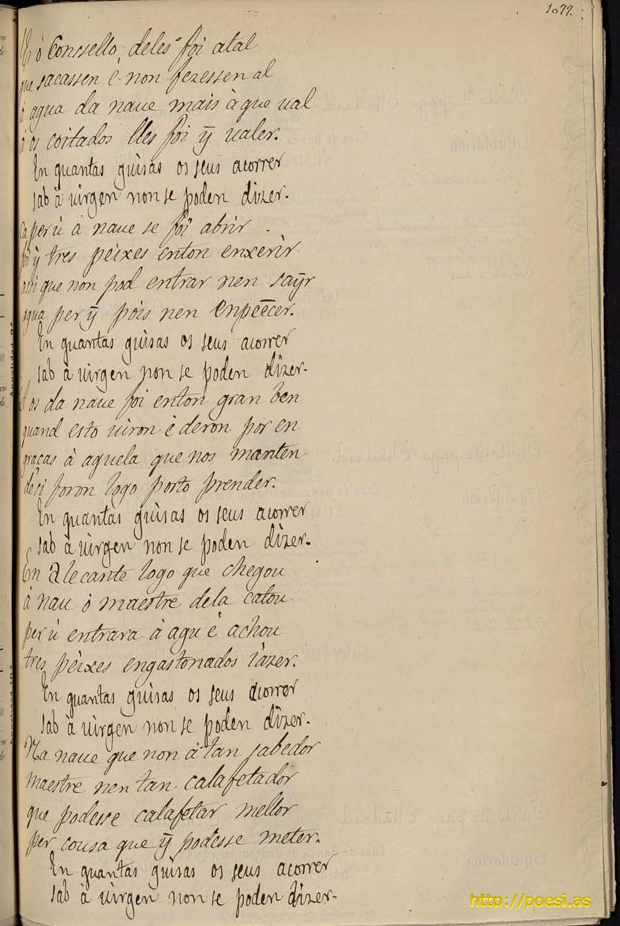 Incluido en Copia d' las Cantigas del rey don Alfonso el Sabio según los 2 códices del Escorial con las notas citas e índices de los mismos para la publicación q proyectaba Florencio Janer. Biblioteca Nacional de España. Madrid, (Mss. 5.982)
